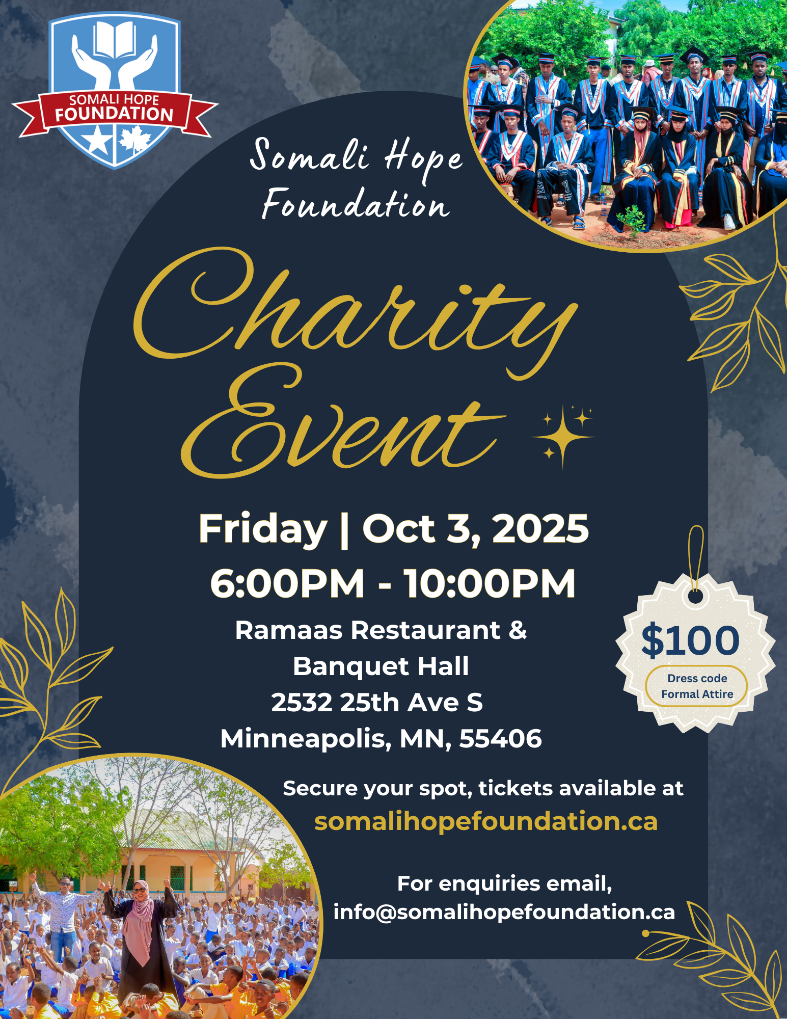Please join us on Friday, October 3rd, 2025 at the Leonora Event Center for an evening of celebration, entertainment and fundraising for Somali Hope Academy.